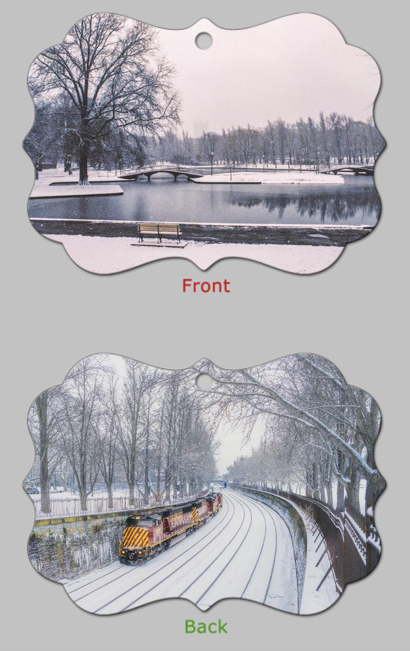 Metal Ornaments are made using the same state-of-the-art process as full-size metal prints. Dyes are infused onto specially coated aluminum, for a special memento with exceptional durability. Double-sided and delivered ready to hang, with a red ribbon attached.