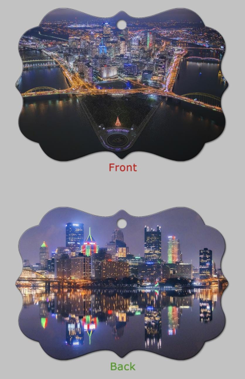 Metal Ornaments are made using the same state-of-the-art process as full-size metal prints. Dyes are infused onto specially coated aluminum, for a special memento with exceptional durability. Double-sided and delivered ready to hang, with a red ribbon attached.