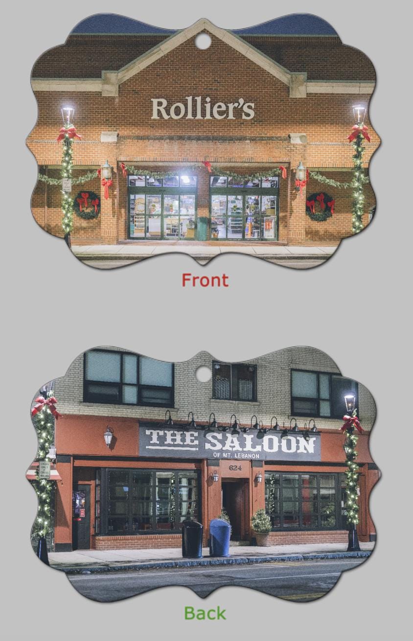 Holiday scenes in Mt. Lebanon of the Saloon and Rollier's Hardware.