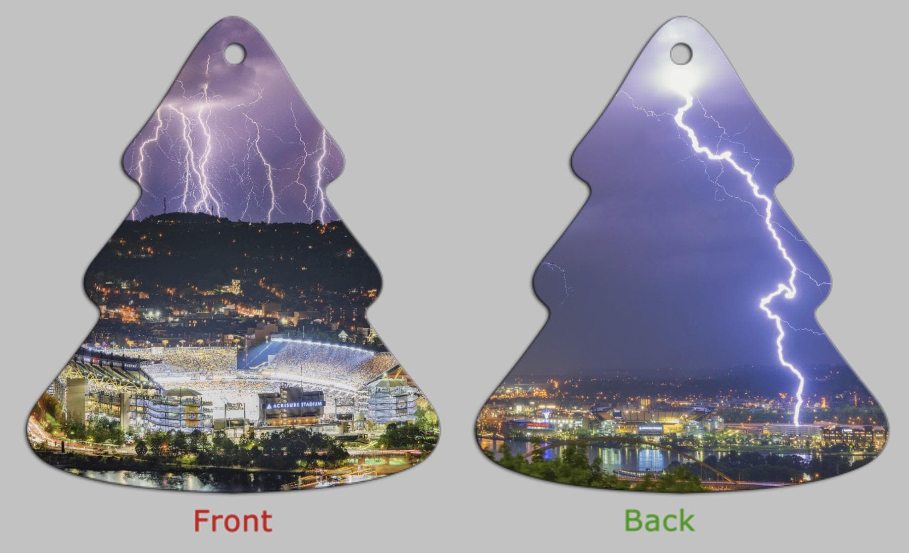 Metal Ornaments are made using the same state-of-the-art process as full-size metal prints. Dyes are infused onto specially coated aluminum, for a special memento with exceptional durability. Double-sided and delivered ready to hang, with a red ribbon attached.