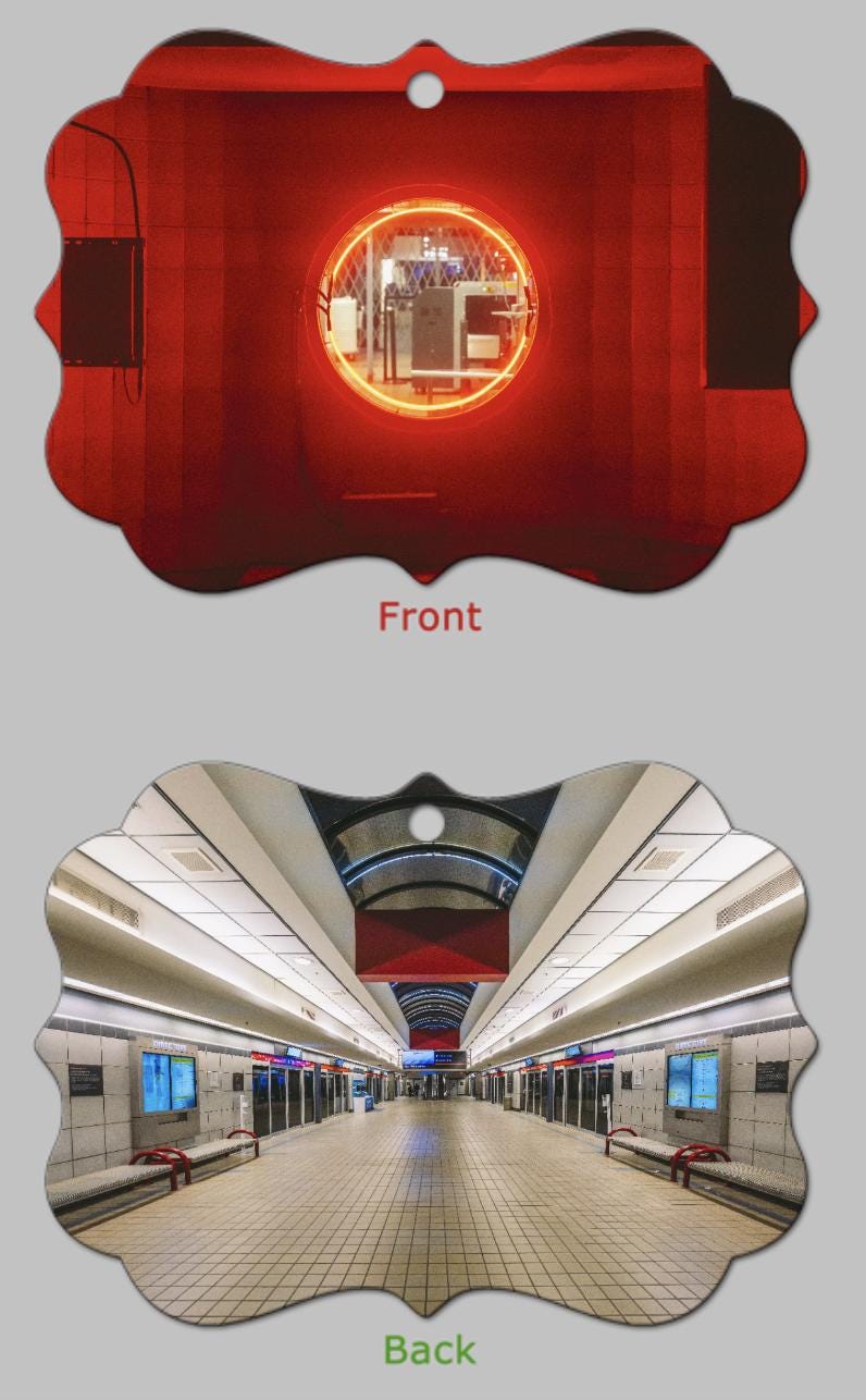 Metal Ornaments are made using the same state-of-the-art process as full-size metal prints. Dyes are infused onto specially coated aluminum, for a special memento with exceptional durability. Double-sided and delivered ready to hang, with a red ribbon attached.
