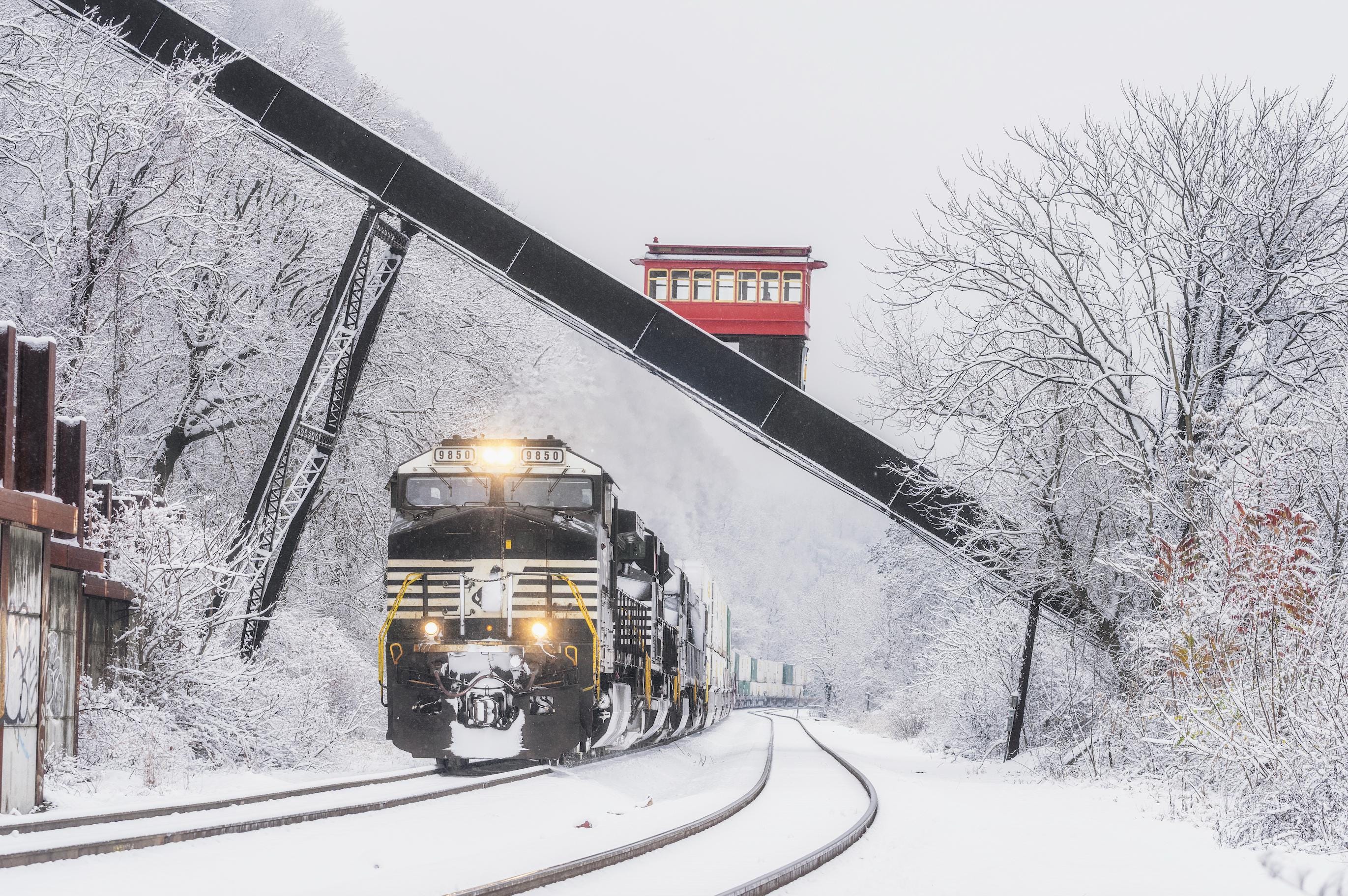 A bucket list image for me: a Norfolk Southern train passing under the Duquesne Incline on a snowy morning.