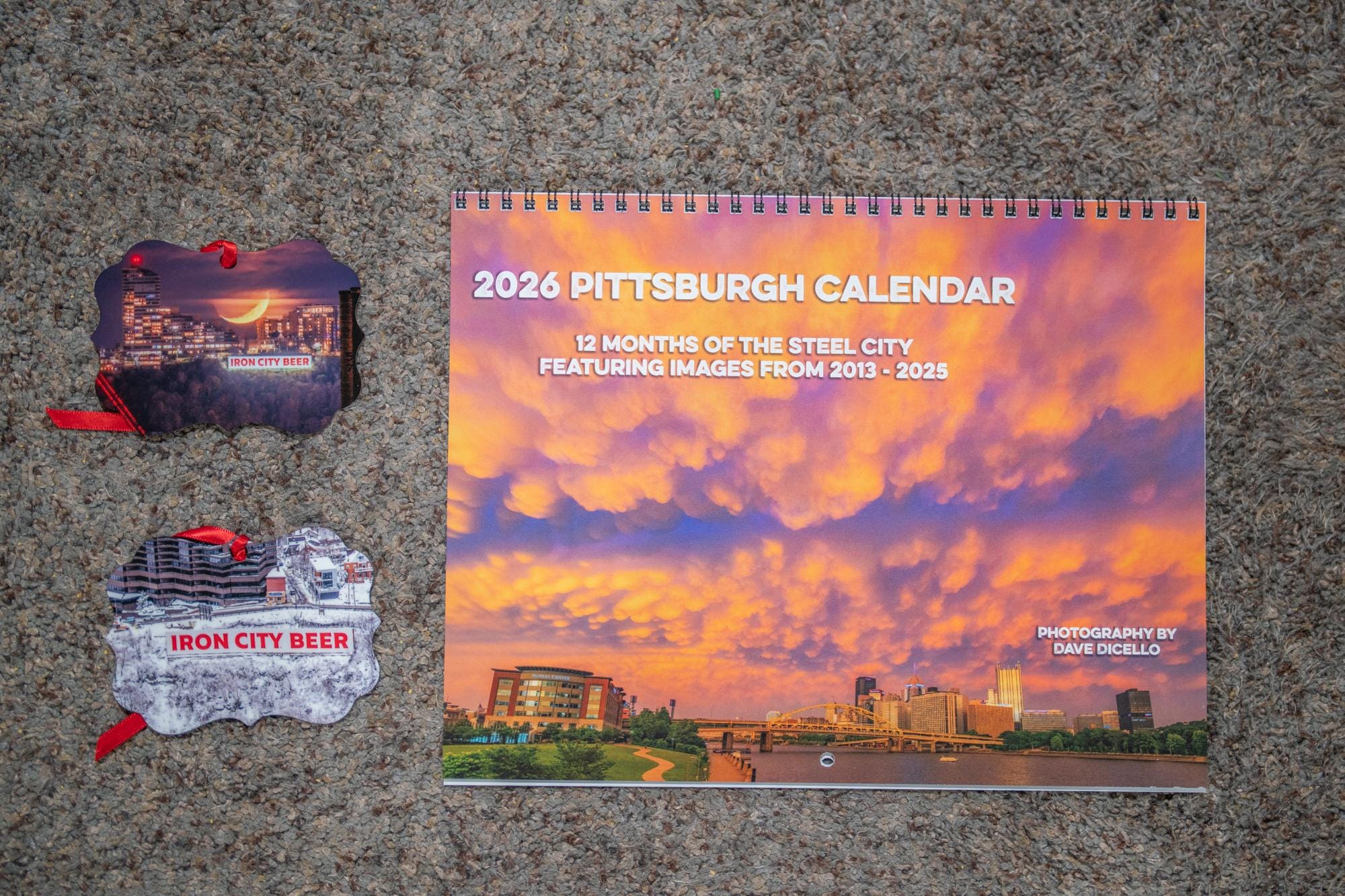 This bundle includes my 2026 Anniversary Calendar along with a metal, double side ornament of the old Iron City Sign on Mt. Washington.